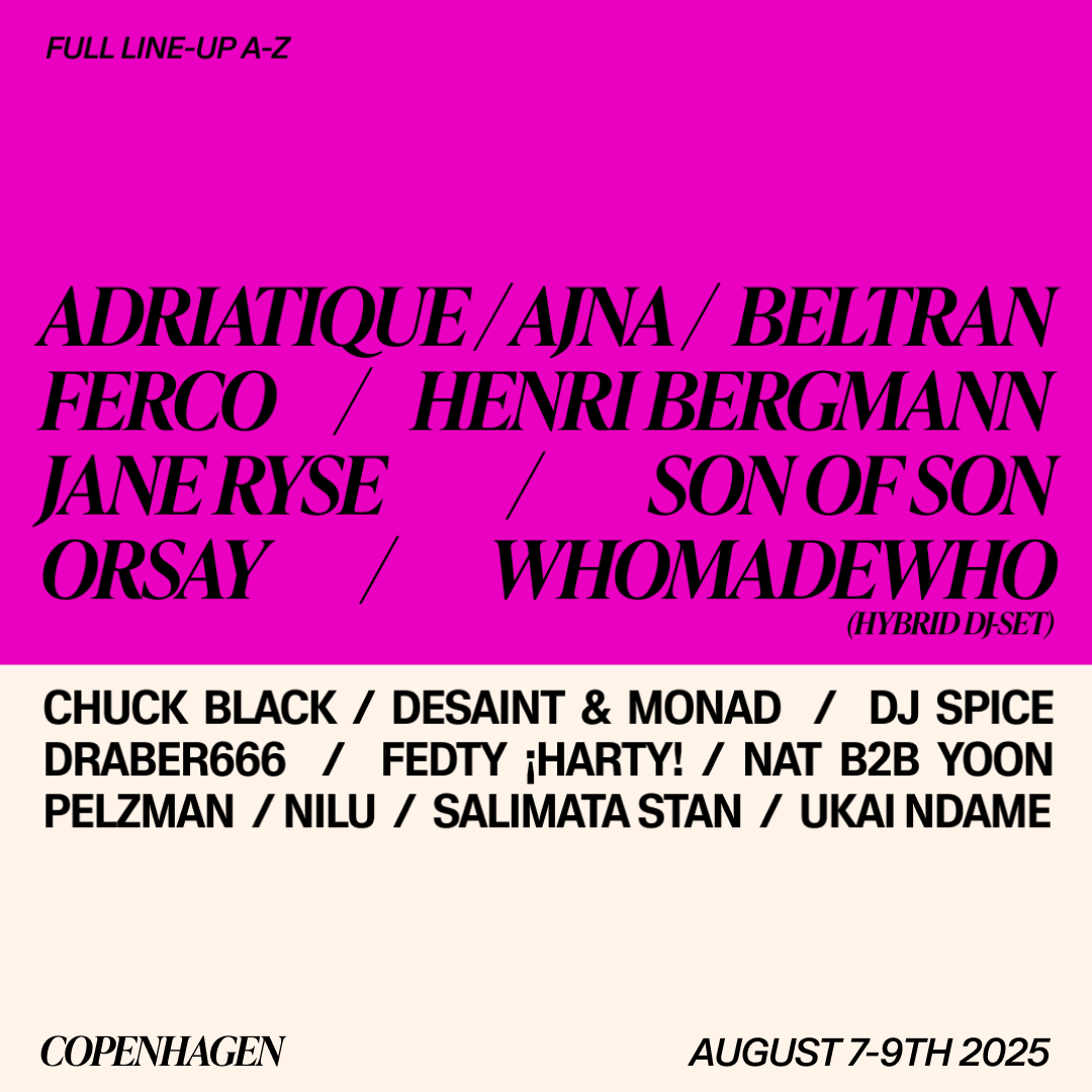 The lineup features international favorite Henri Bergmann, the ever-inventive Orsay, dancefloor master Chuck Black, and the unstoppable Fedty.